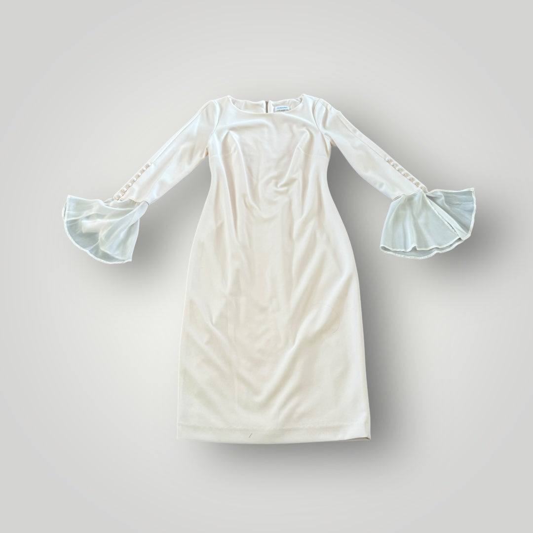 - Tags: Bell sleeve, Bridal shower dress, Calvin klein, Church outfit, Classic style, Sheath dress, Size 4, White dress