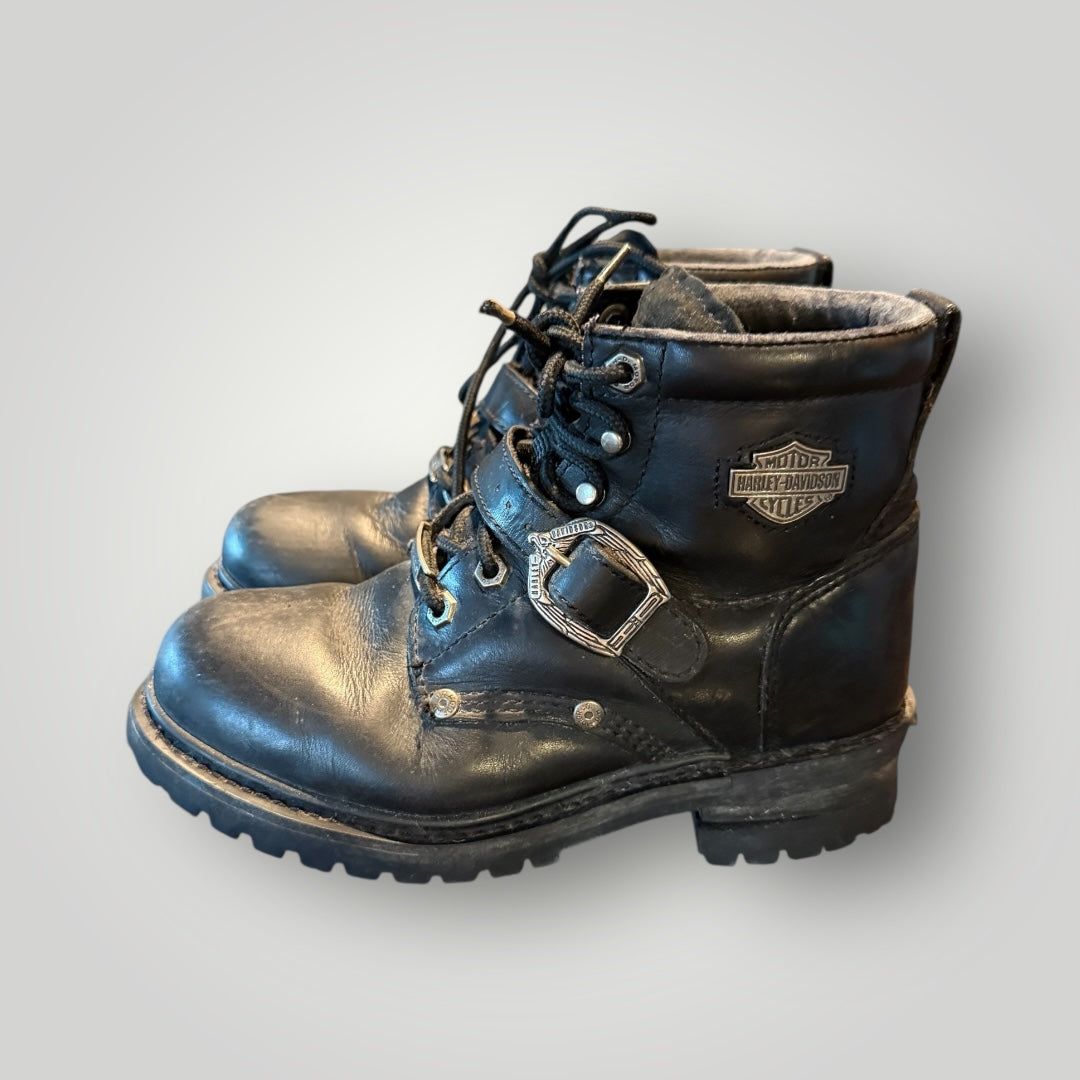 Classic and durable, these Harley-Davidson women’s leather boots feature a rugged lace-up design with signature Harley buckles and logo detailing. Crafted for both protection and style, they offer a comfortable fit, padded lining, and strong tread soles for excellent gripperfect for riding or casual wear.