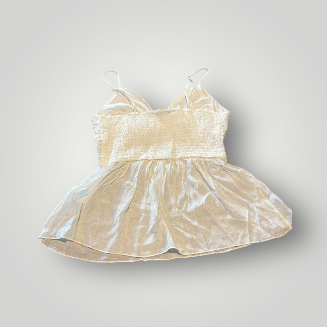 Brand new with tags! Feminine and chic cami featuring a delicate lace-trimmed bodice, adjustable straps, and a flowy peplum hem. Perfect for layering under cardigans or wearing alone for a flirty, stylish look.